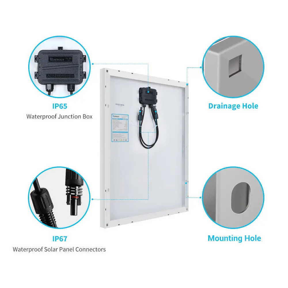 - Compatible with different Renogy mounting systems such as Z-Brackets, Pole Mounts and Tilt Mounts.